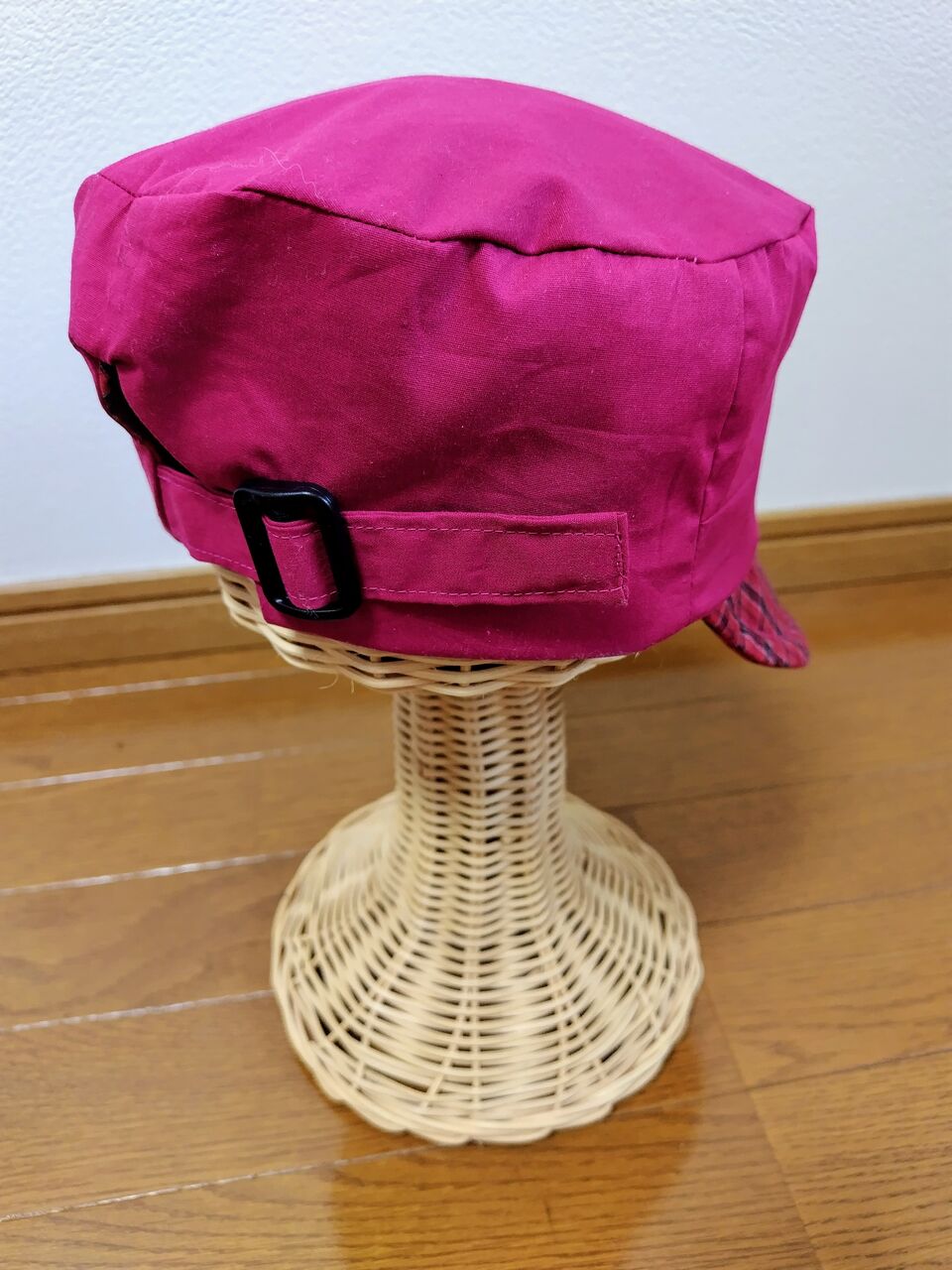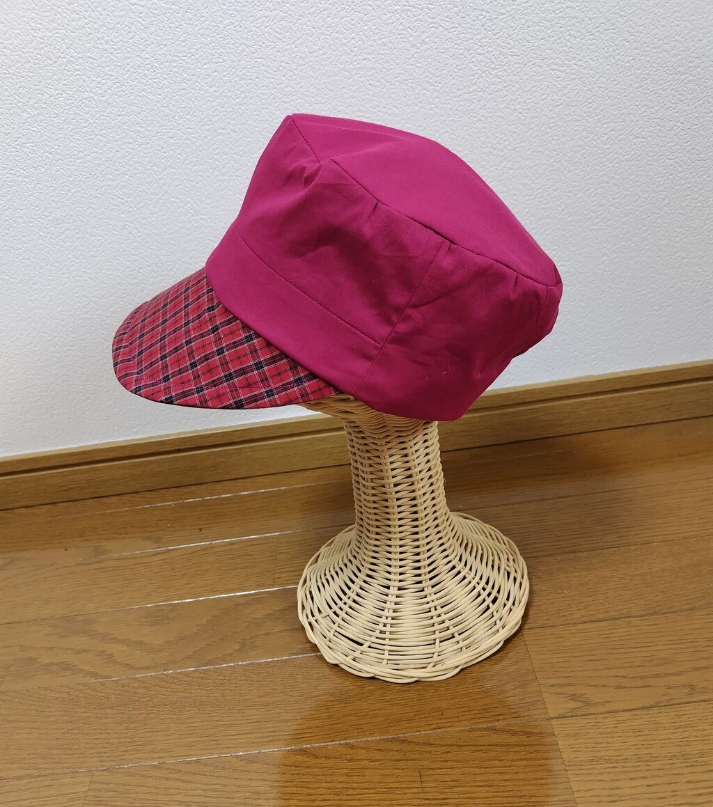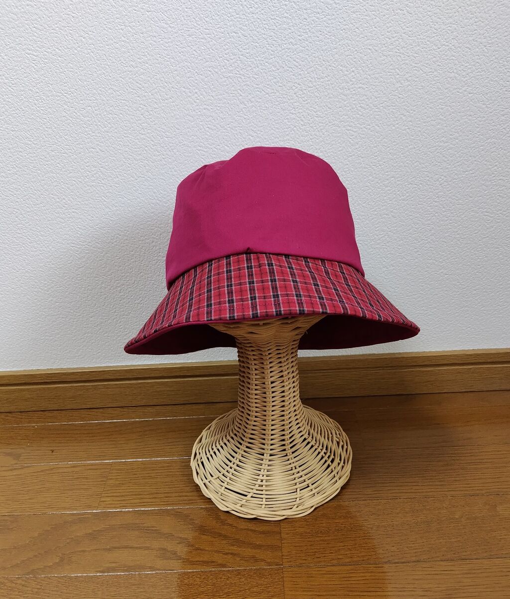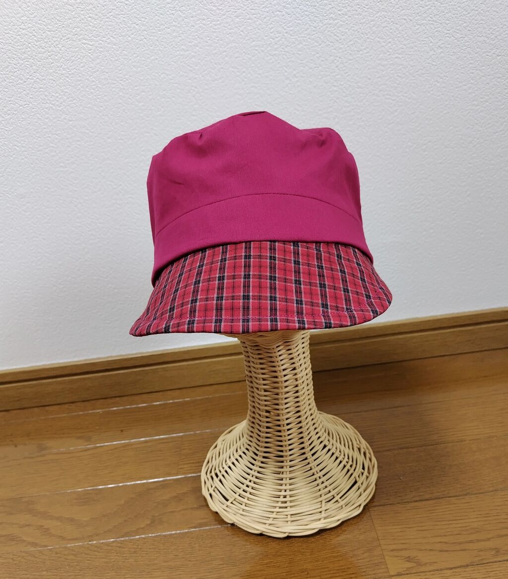 2つ目は、赤チェックのバケットハットです。